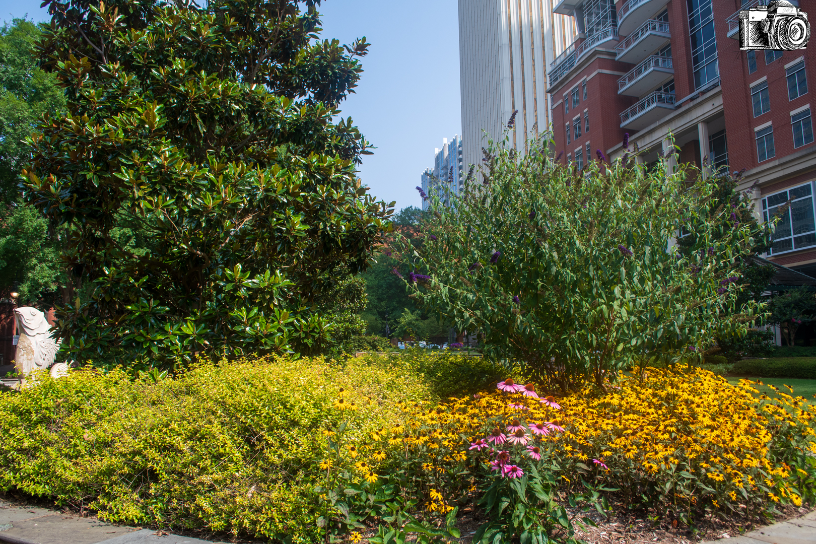 I took these photos the other day while riding my bike around Uptown Charlotte. The air quality was poor due to the wildfires, so I didn’t get to go as far as I wanted to. I rode my bike around the green and took some photos of everything blooming that day.