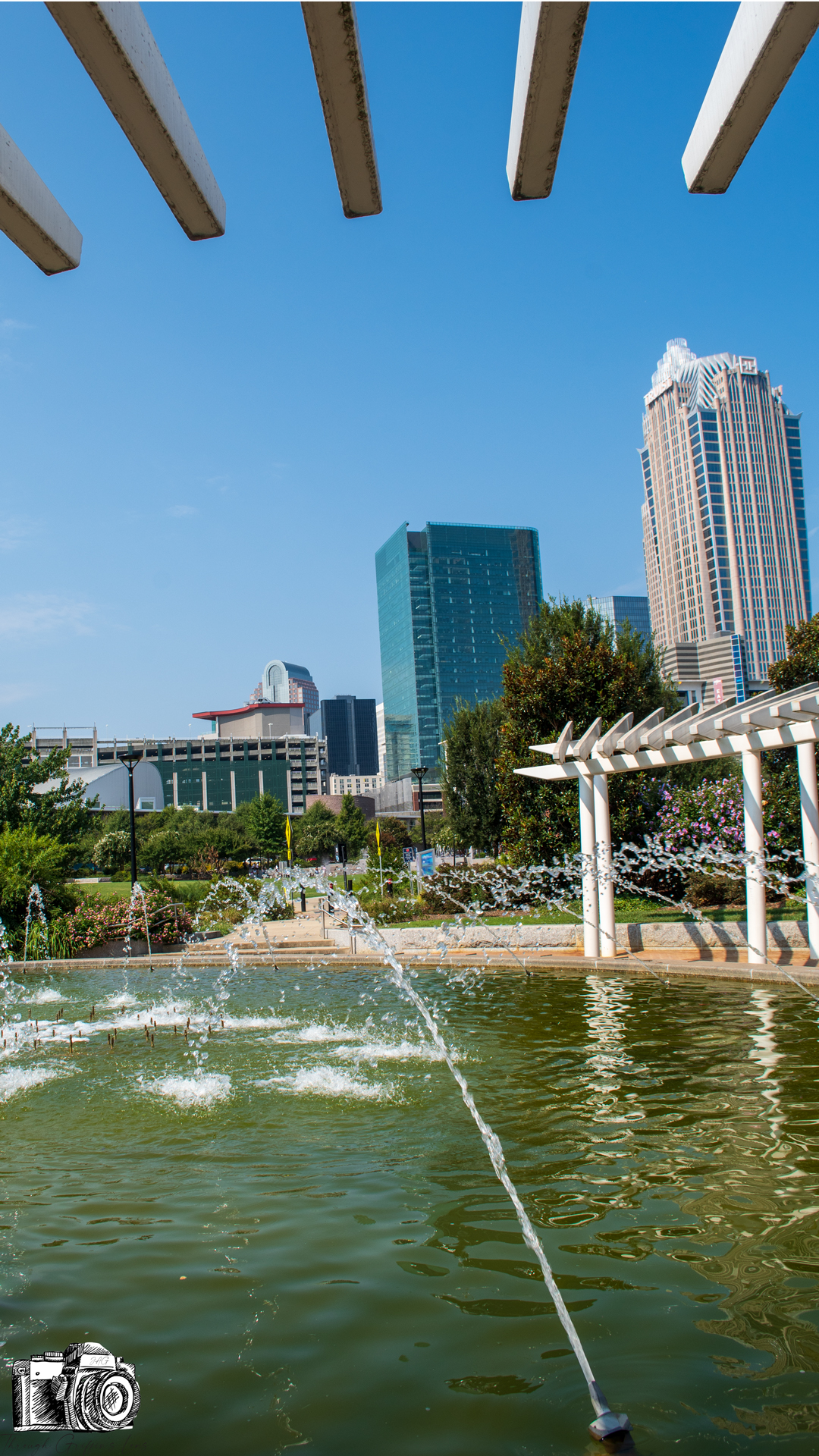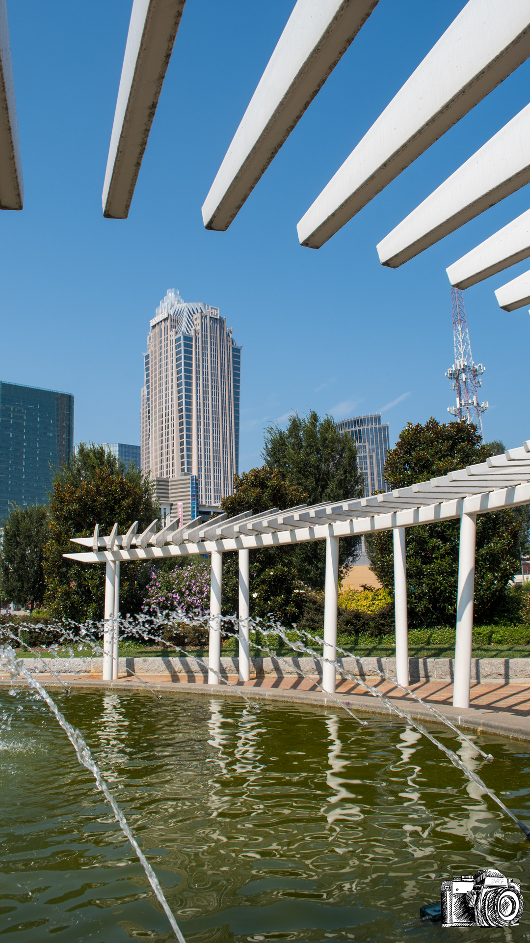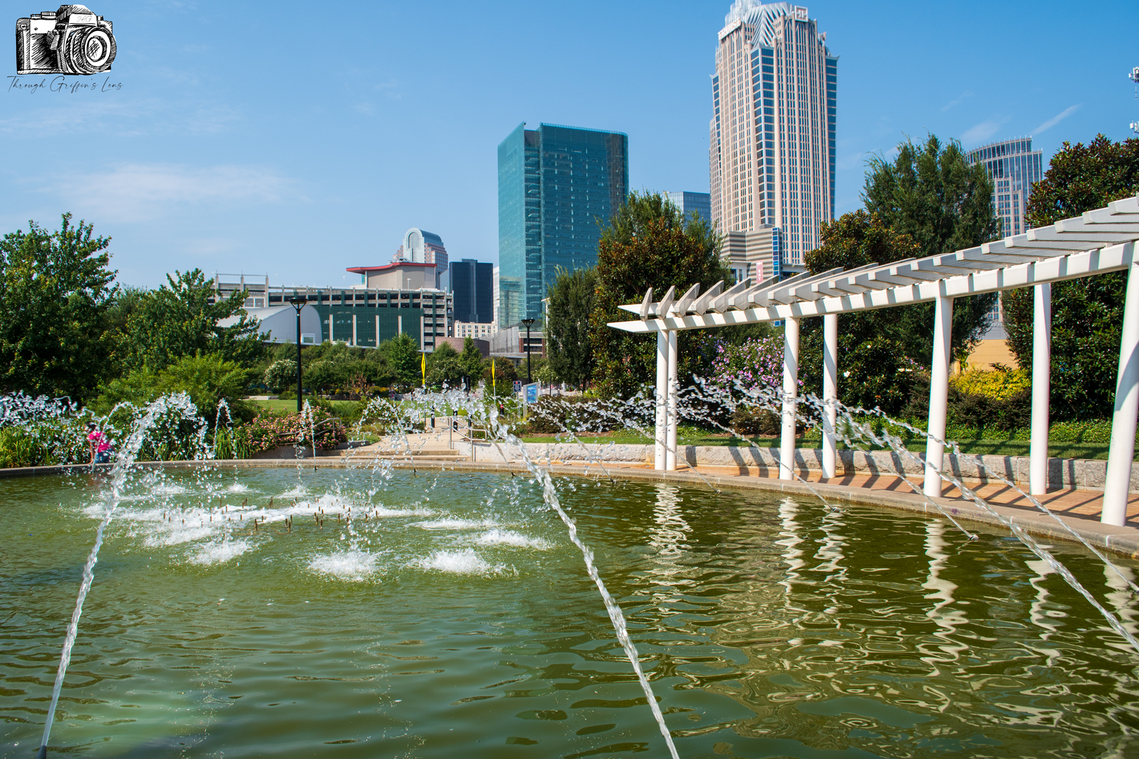 I took these photos on my last bike ride down to Uptown Charlotte. I finally had some time to go through and got photos ready to post just yesterday. I went over to First Ward Park, and it was a beautiful bright and clear morning. I set my camera up behind the fountain at UNCC Center City, and I was able to get this great view of Uptown Charlotte.