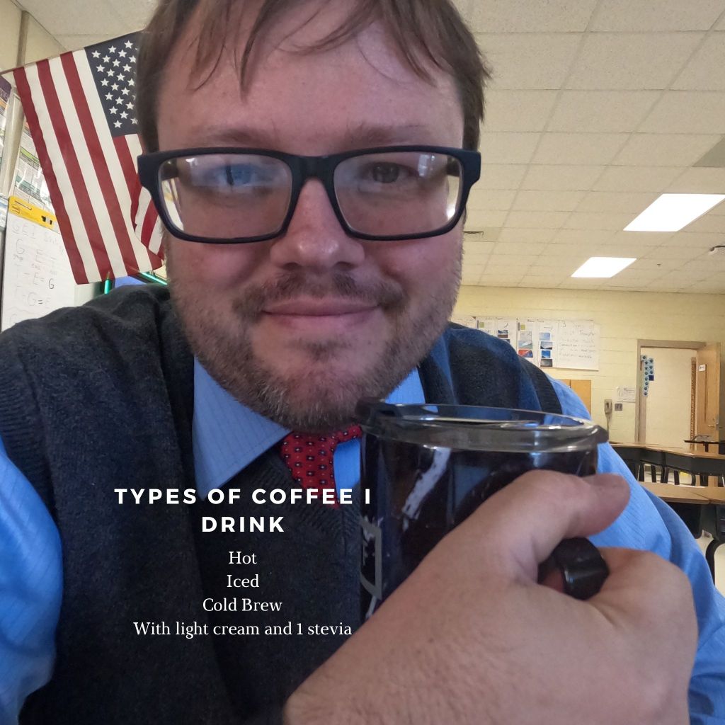– I always wake up to a fresh cup of coffee in the morning. I drink two mugs with me to work, my hot coffee for my commute and iced coffee for the afternoon. I prepare another hot cup during my planning period.