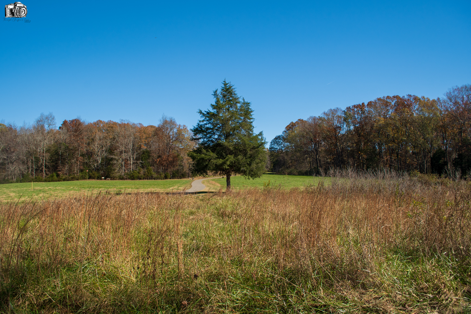 I took these photos a couple of years ago while the family and I visited Fisher Farm Park near Davidson, North Carolina. We walk around for a little bit, and took some family photos of each other while we were out there. This one tree stuck out to me because it was sitting out all by itself. It became my subject for the moment.