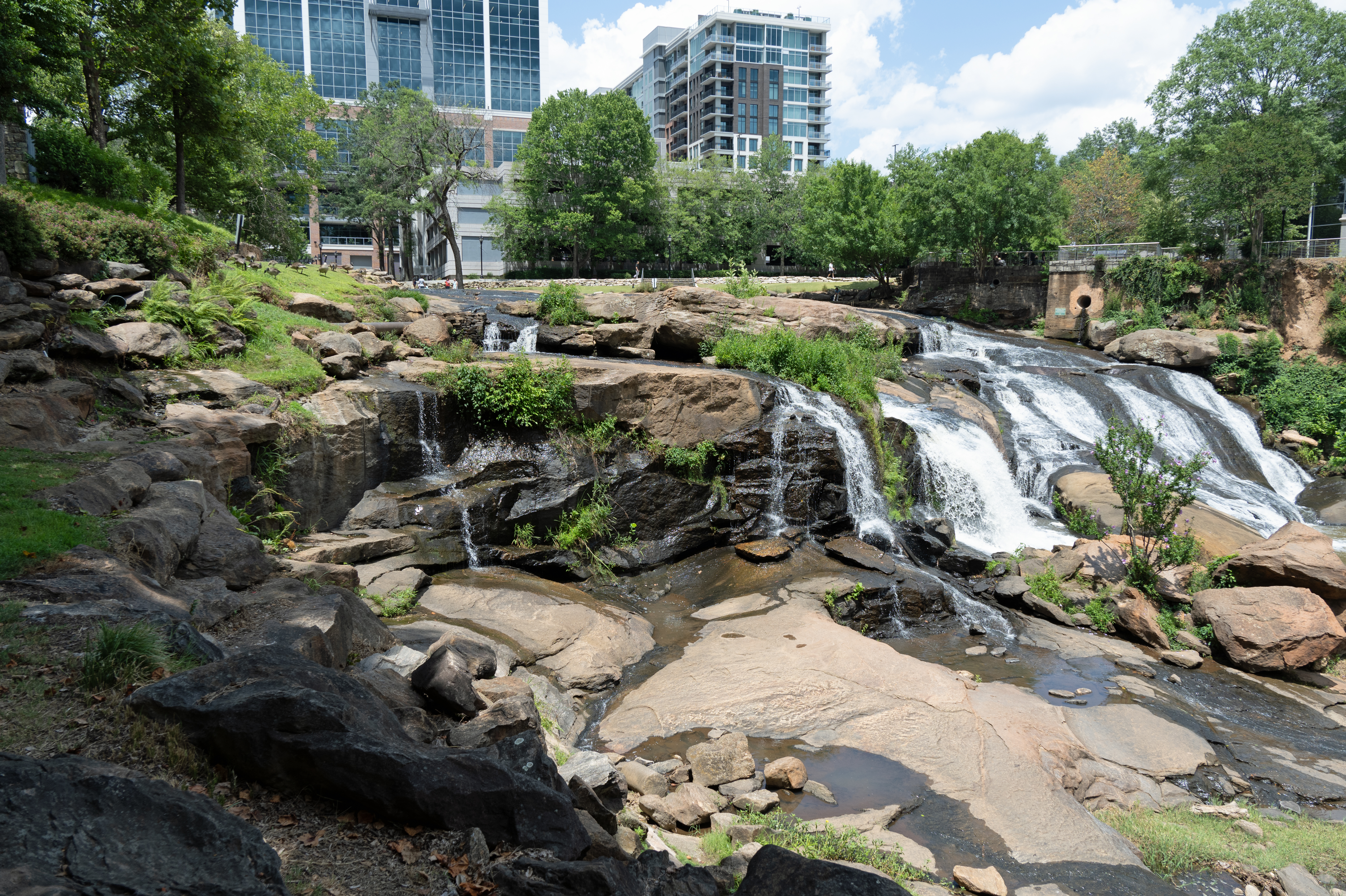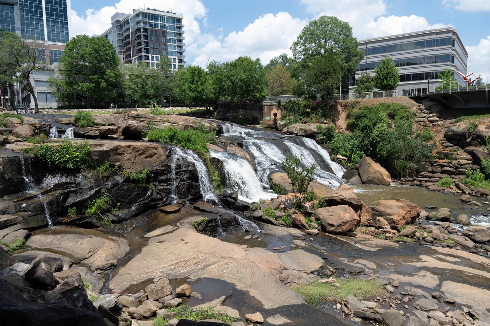 A sure way to find a waterfall that is easy to get to is to find one in the middle of the city. One of the many things Greenville, South Carolina features is a waterfall in the middle of town. Once you find a place to park, you can head over to Falls Park on the Reedy. You can see the falls from a few different vantage points, from the base to the walkway that runs right in front of it.