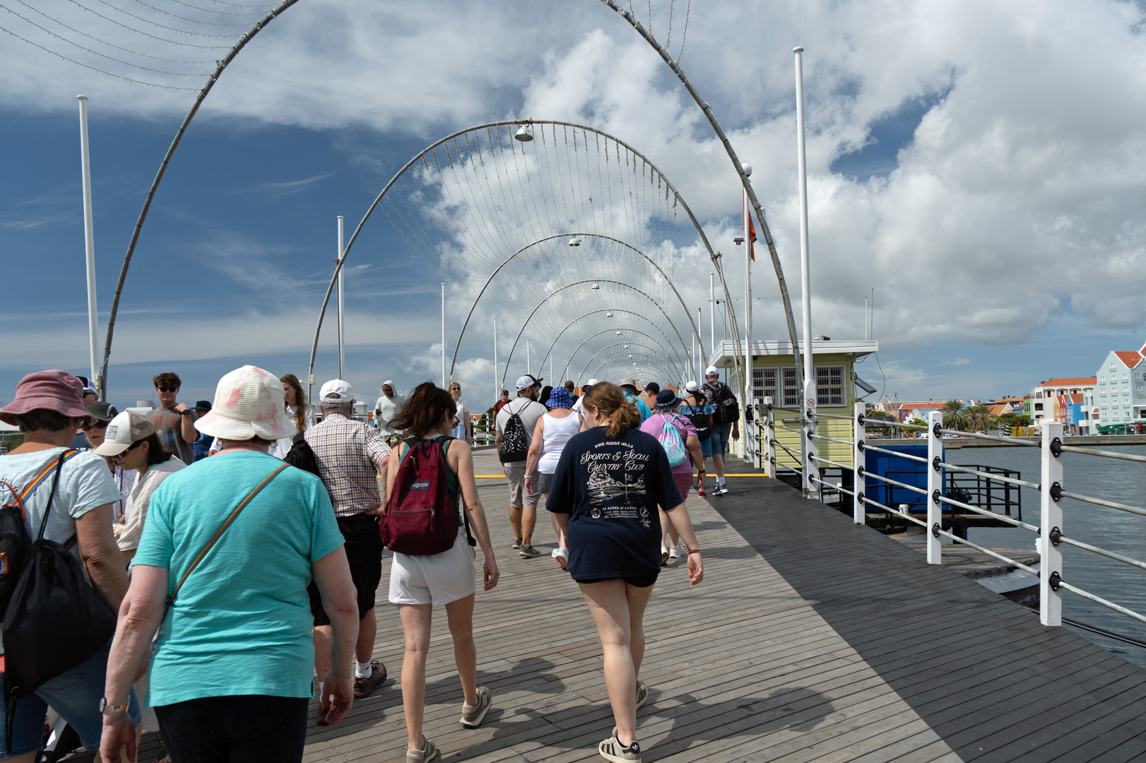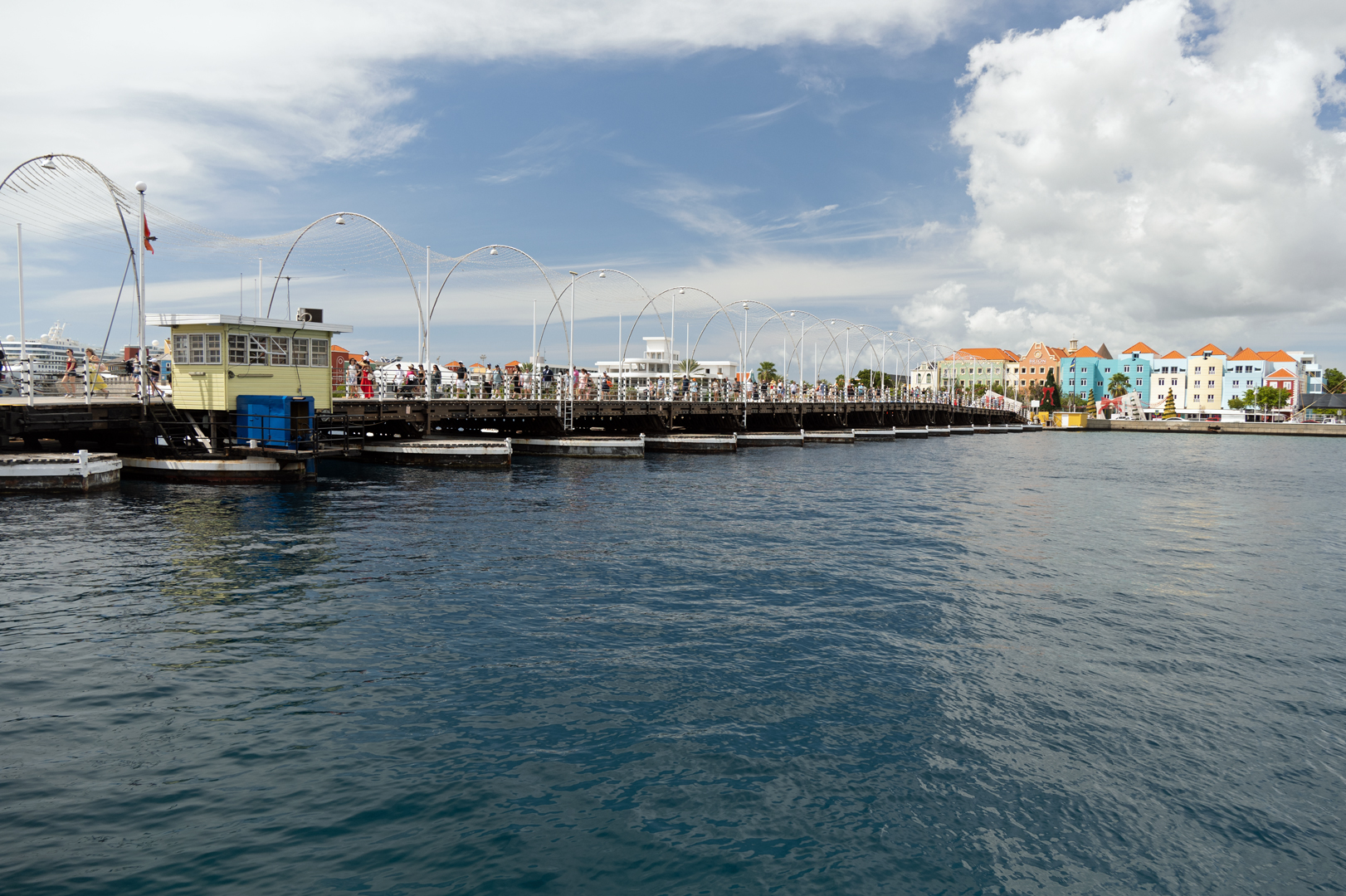 I took these photos last winter, when the family and I took a cruise around the Caribbean. One of the places we stopped was Willemstad, Curaçao. It is well known for having a floating bridge near their port. Here are some photos of it, and what it looked like to walk across it.