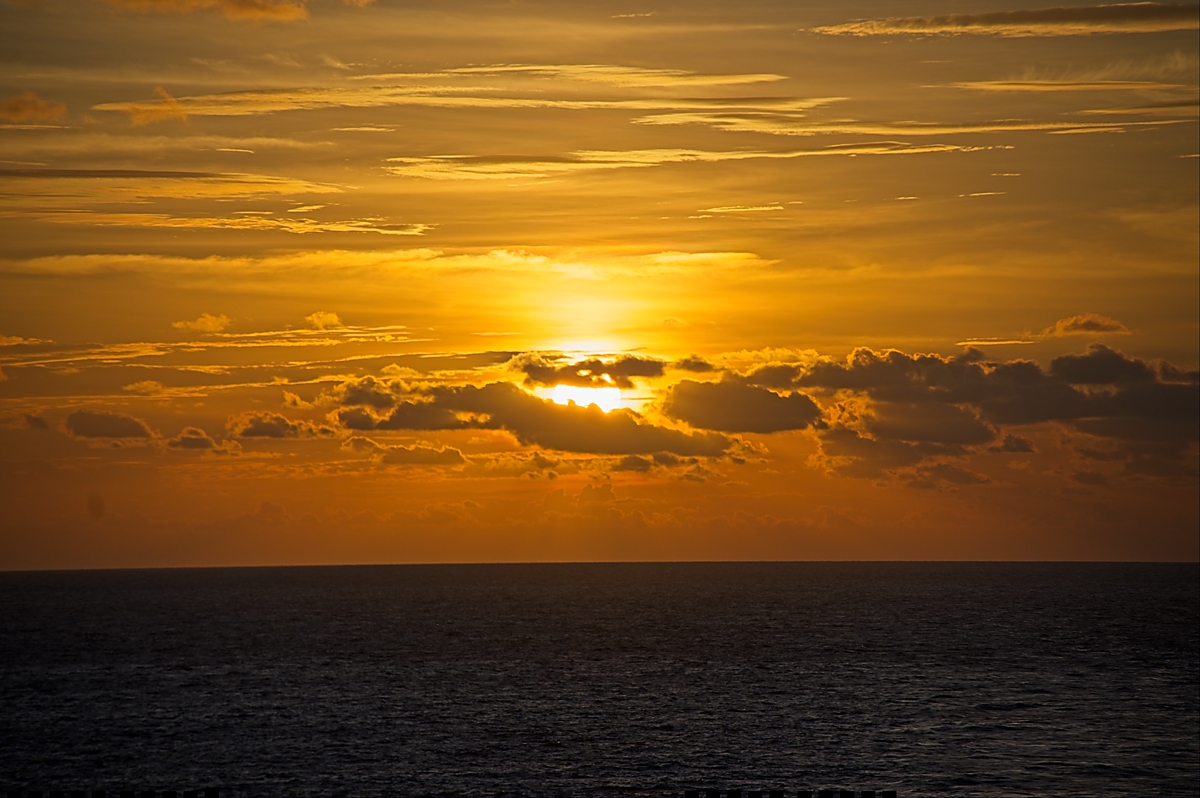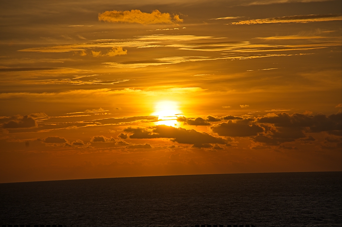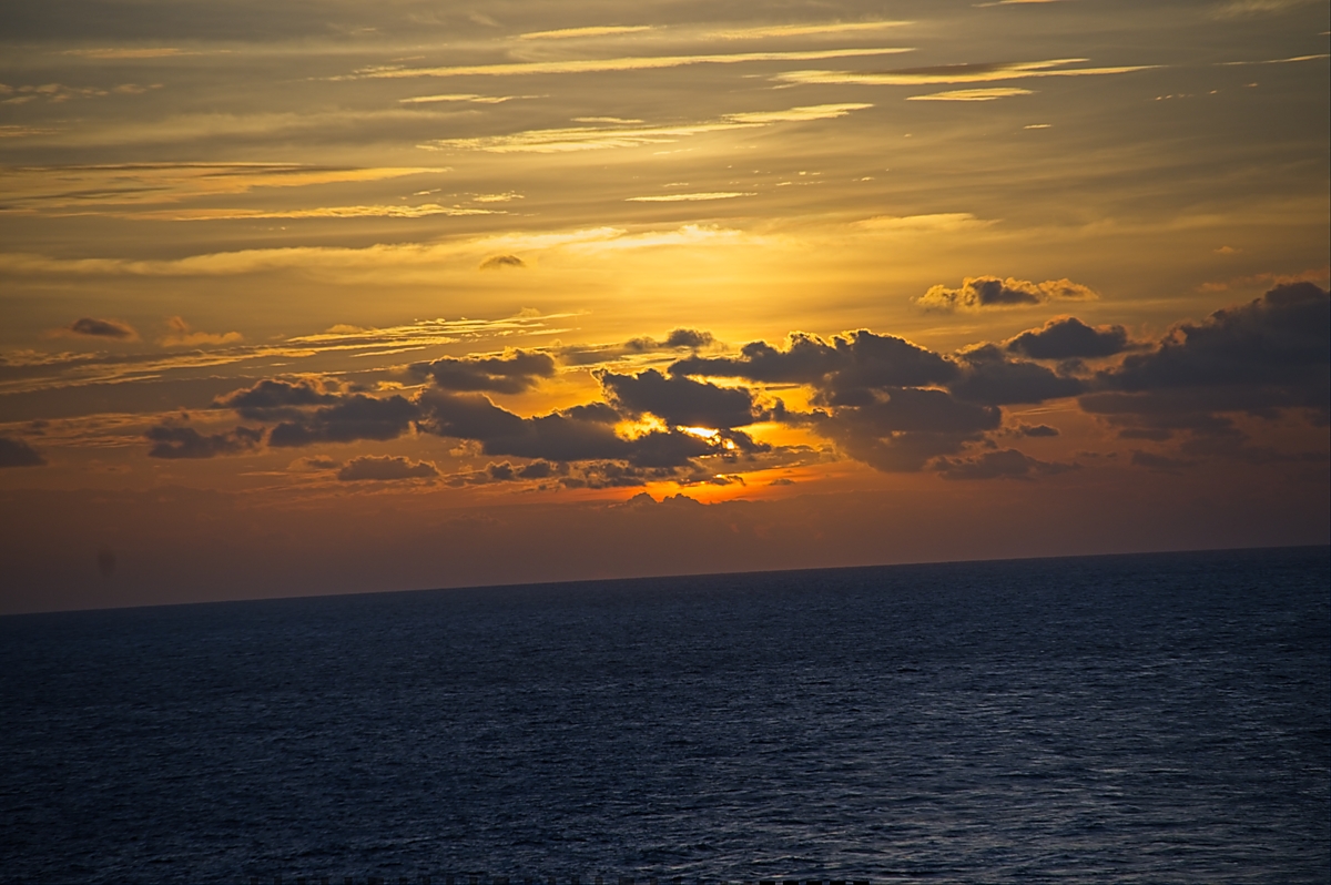 During my winter break last year, my family and I took a cruise around the Caribbean. We stayed up late on New Year’s Eve to celebrate as a family. As soon as midnight hit, we went to bed. For some reason, I woke up before sunrise on New Year’s Day. I grabbed my camera, picked up a cup of coffee, and headed toward the top deck to watch the sunrise. Waking up early paid off because I was able to see and capture this amazing view.