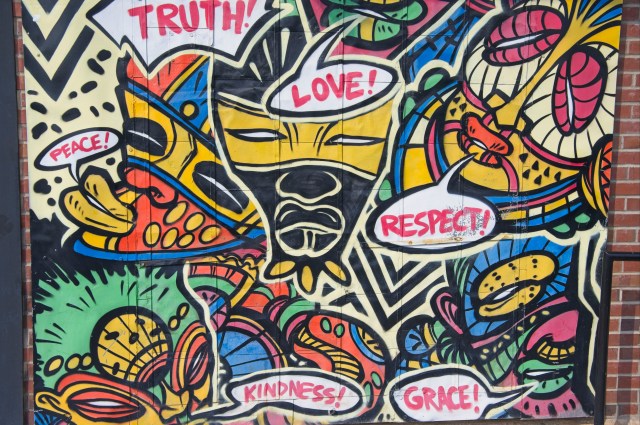 On spot that has some awesome graffiti artwork is Camp North End. Camp North End is located just north of Uptown Charlotte. I captured these photos last July. My wife and I were taking pictures at Camp North End in Charlotte, North Carolina. Camp North End has great coffee shops, retail, and, awesome murals around it. We captured some photos using my tripod with each other, and I captured photos of the murals as well. Here are some of the photos I captured of the artwork.