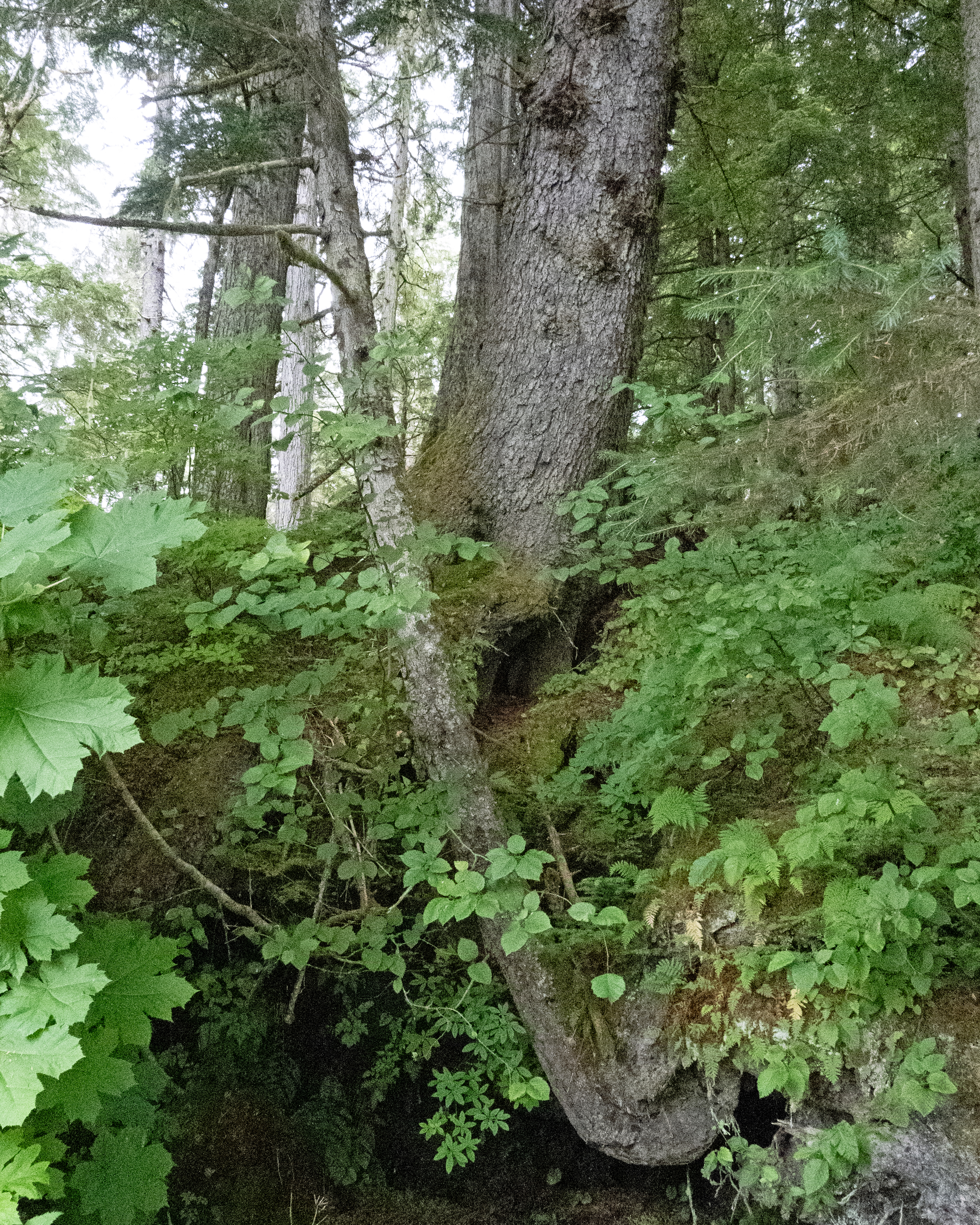 When we walked off our cruise ship that morning, we headed straight for a walking path. The path went along the coast. When we got there, we saw the shoreline was covered in starfish. I captured these photos and many more when we visited Icy Strait Point. When we planned the trip, I didn’t realize I would be visiting a rainforest. Alaska is home to the largest temperate rainforest in the world, the Tongass National Forest. This vast rainforest stretches along the coast of Southeast and Southcentral Alaska. It receives significant rainfall and boasts a unique, mild climate compared to other parts of the state. On average, the area gets around 200 inches of rain per year. Compare that to where I live in Charlotte, North Carolina, which gets 42 inches of rain a year. This area is home to the Sitka spruce trees that can grow over 200 feet tall. The rainforest supports a wide array of wildlife. These include brown bears, wolves, salmon, and bald eagles.