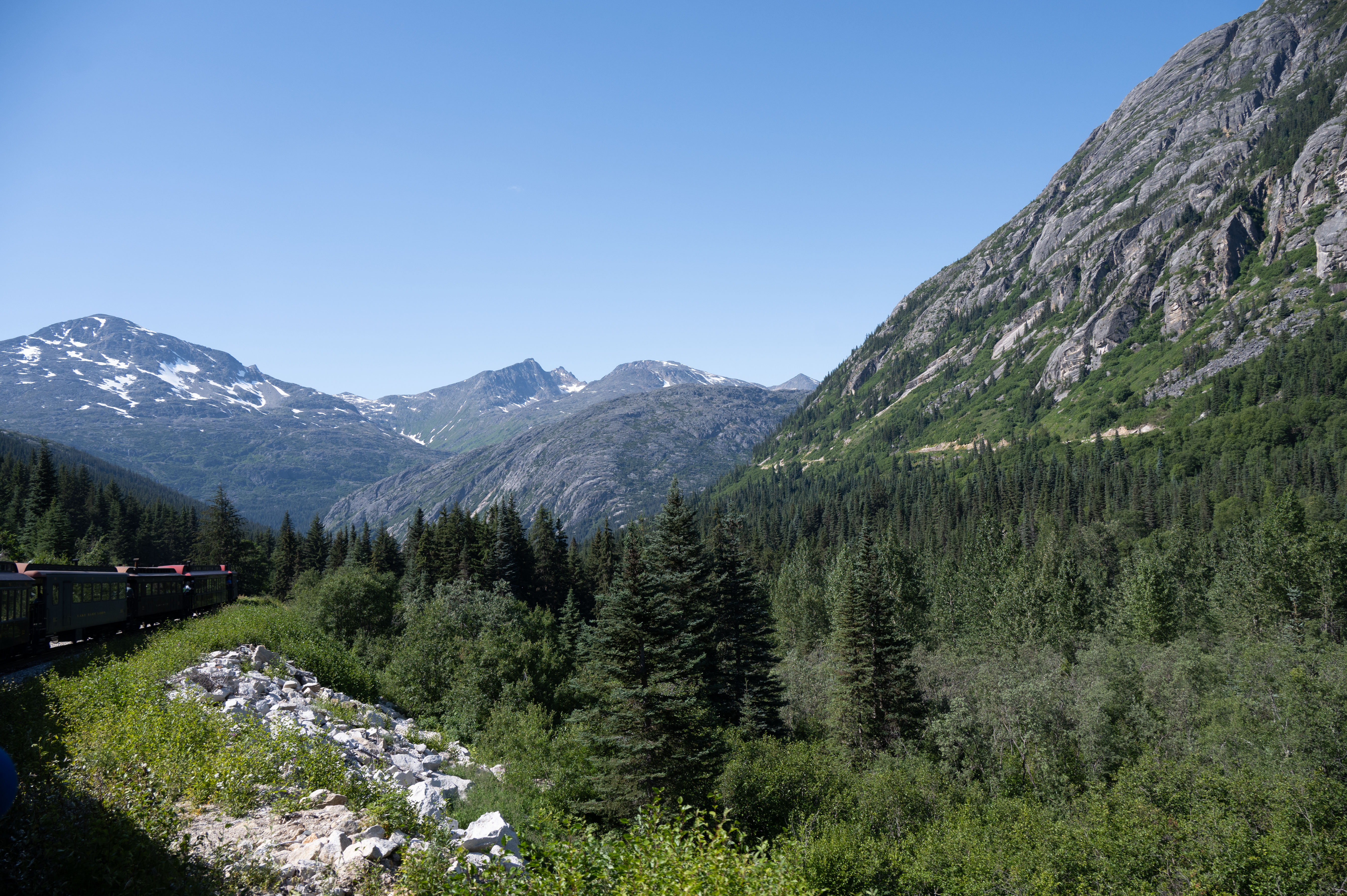 Growing up, I always wanted to see more of the world. The furthest west I had been was Atlanta, Georgia. Keep in mind, I grew up in Georgia. I always hated that I hadn’t been to that many places. That has changed. Now that I have the means to travel more, I have. One of the places I have always wanted to visit was Alaska. I had the opportunity to do so last summer. I know I have been posting about this trip for a while, but I took over 2,000 photos. All of them turned out great to me, so I want to keep sharing them. I captured these photos while we were visiting Skagway, Alaska. We took a train ride on the White Pass and Yukon Route. This train follows the old gold rush route from 1896. On the train, you can see where the walking path ended. They built the railway to go further into the Yukon. Here are just a few of the shots I captured while on the train.